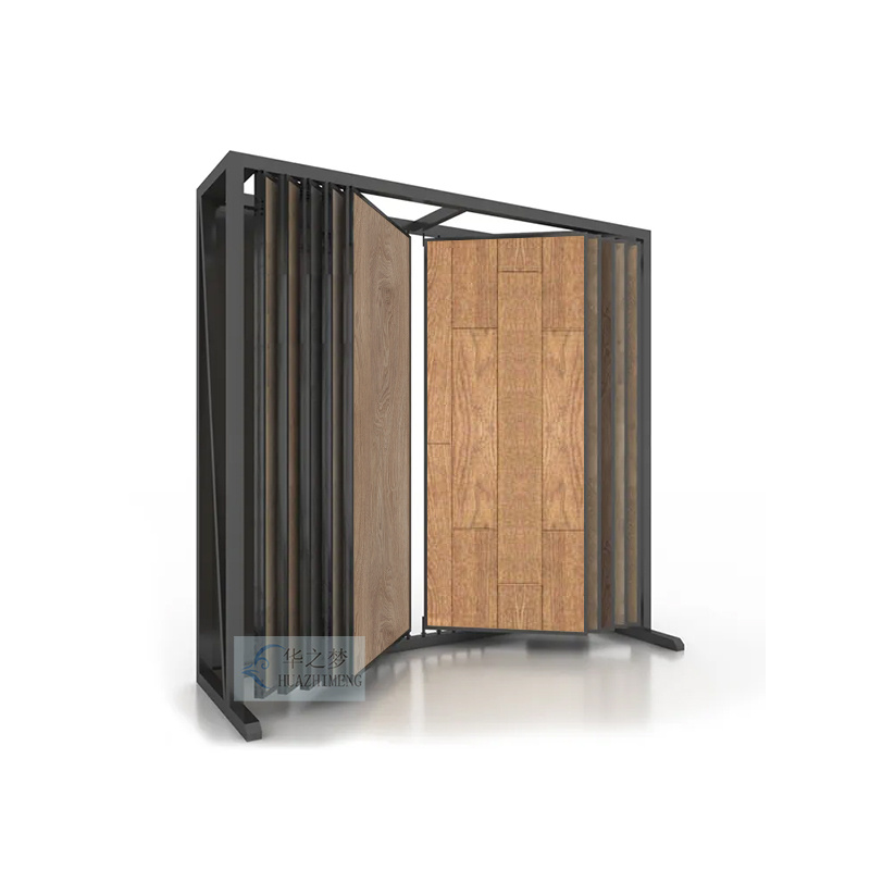 Unlike traditional fixed frames, this model adopts a flip structure, allowing users to easily flip multiple floor samples. Therefore, it improves display efficiency and customer interaction.