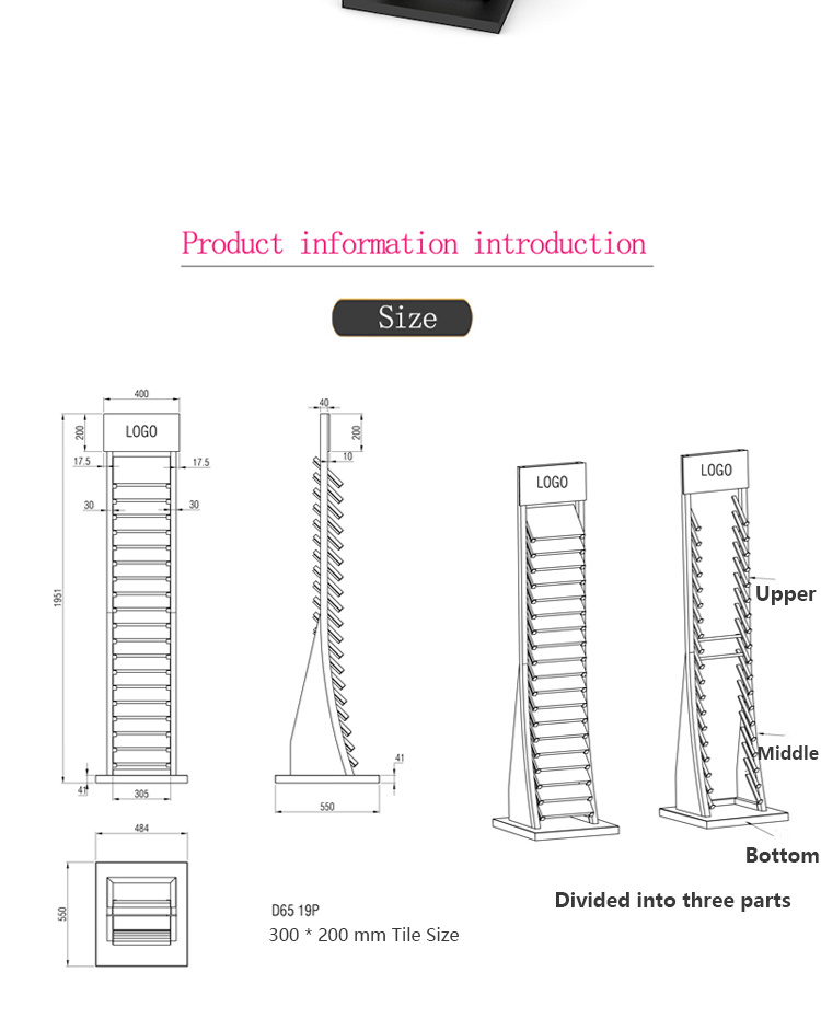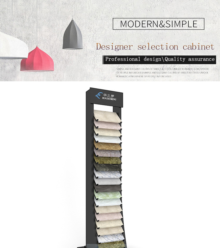 The display rack adopts layered panels and a tilted angle design, providing a clear viewing angle. Therefore, customers can easily compare colors, textures, and finishes. The sturdy base further enhances balance, allowing the bracket to safely support multiple tile panels.