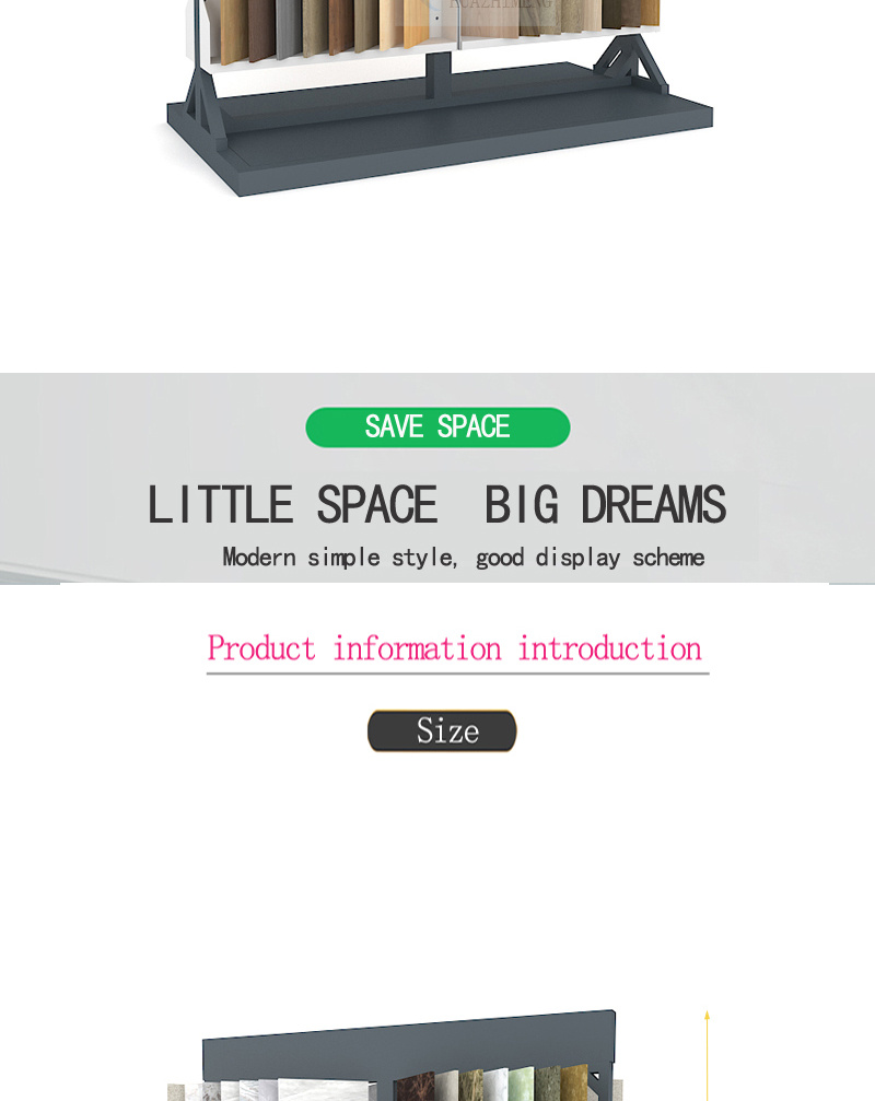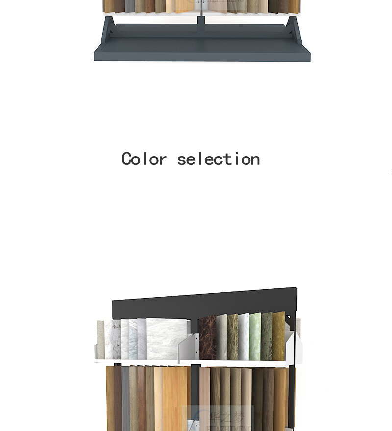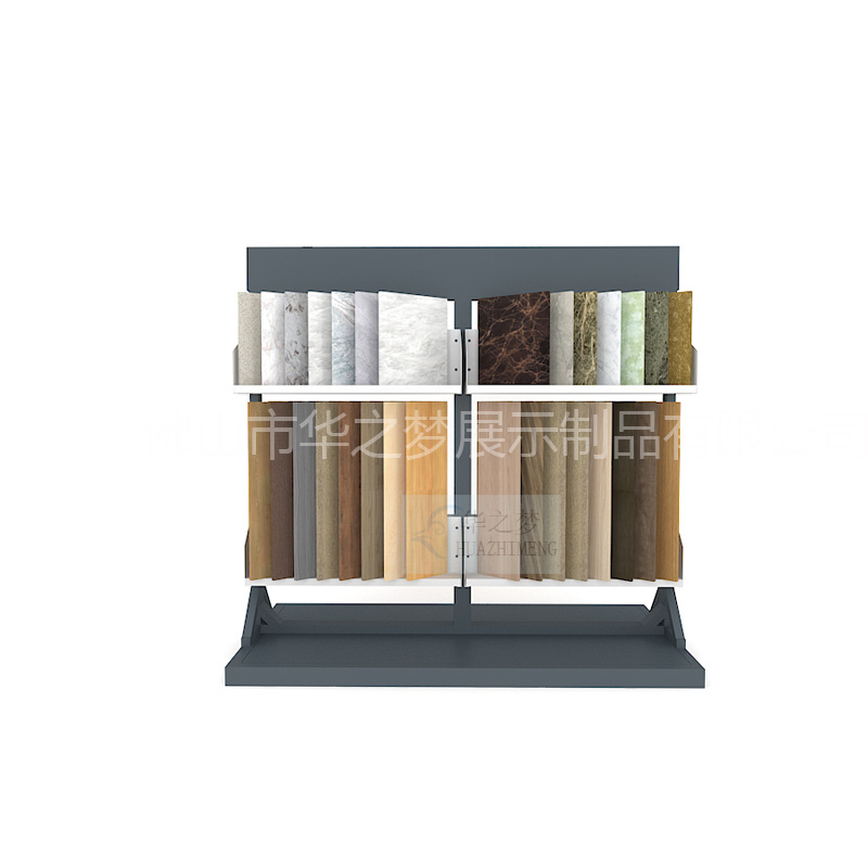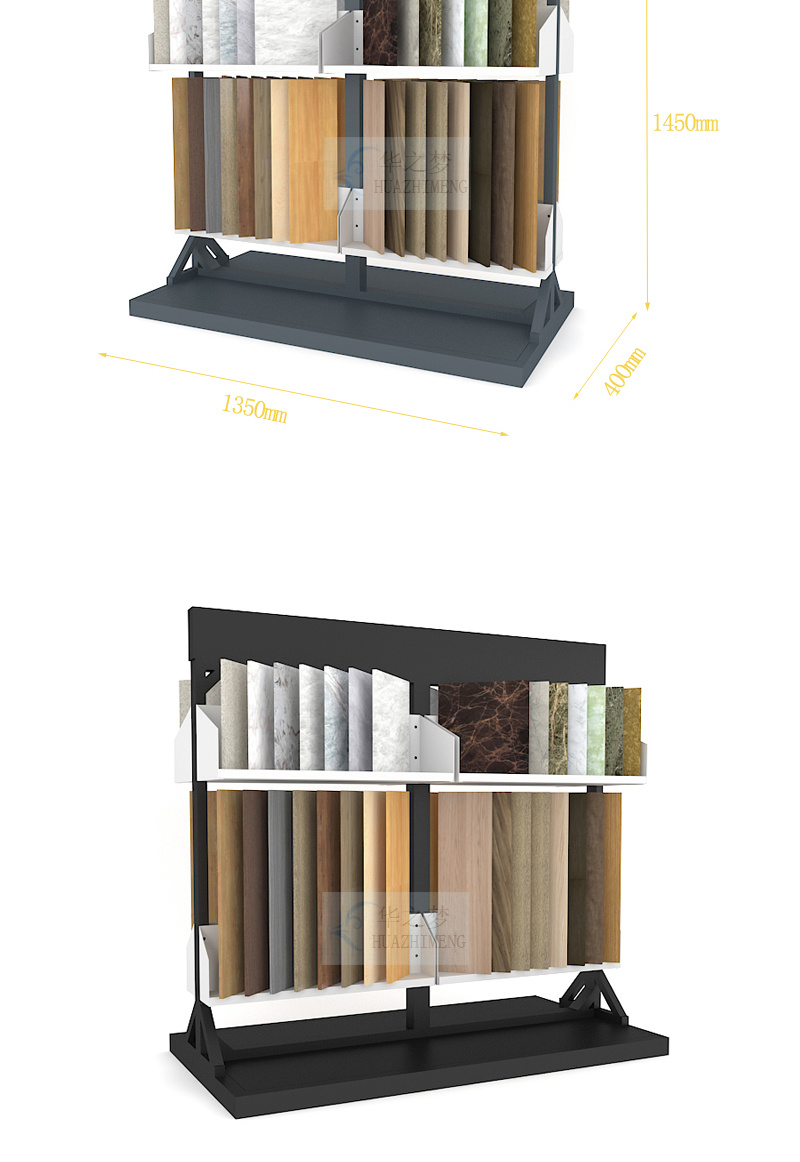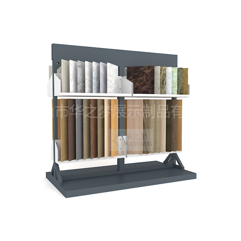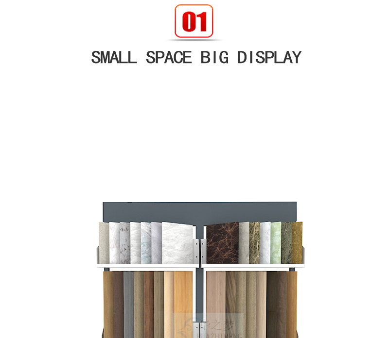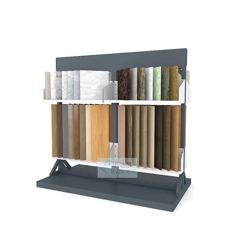 This stylish and modern wooden floor display stand is designed to vertically showcase wooden floor samples with maximum visibility and spatial efficiency. It is very suitable for exhibition halls and retail environments, providing clean and professional presentations.