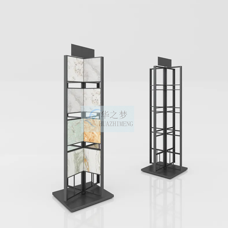 This standing rotating display stand allows easy access to all ceramic tile and stone samples. The 360 degree rotation provides maximum visibility while saving space, making it more attractive to any exhibition hall or exhibition area. Support customized sample size and logo.