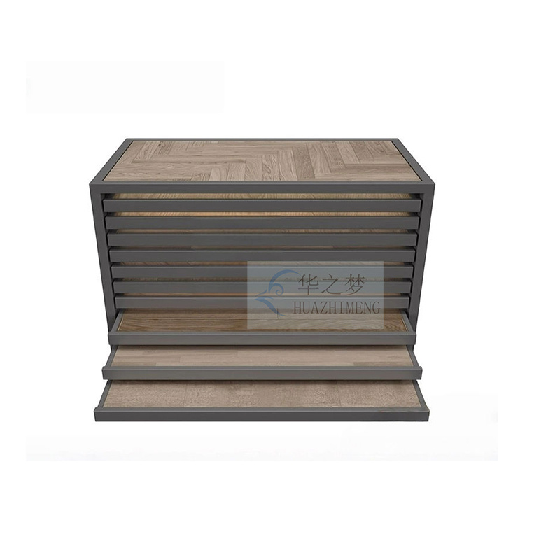 This display cabinet is equipped with multiple drawers, allowing for a clean and orderly display of wood, tile, and marble samples while maximizing space utilization, ensuring an enhanced customer experience. The smooth sliding drawer is convenient for accessing samples while keeping them neat and orderly, both practical and durable.