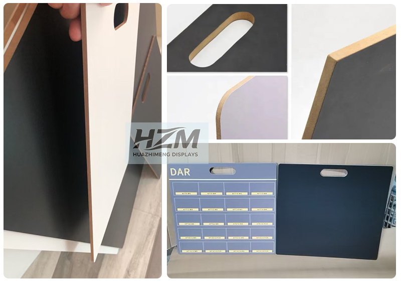 Customized size MDF display board for ceramic, stone, marble, granite, and quartz samples. It is eco-friendly and features a film lamination surface finish. The product supports full customization in size, color.