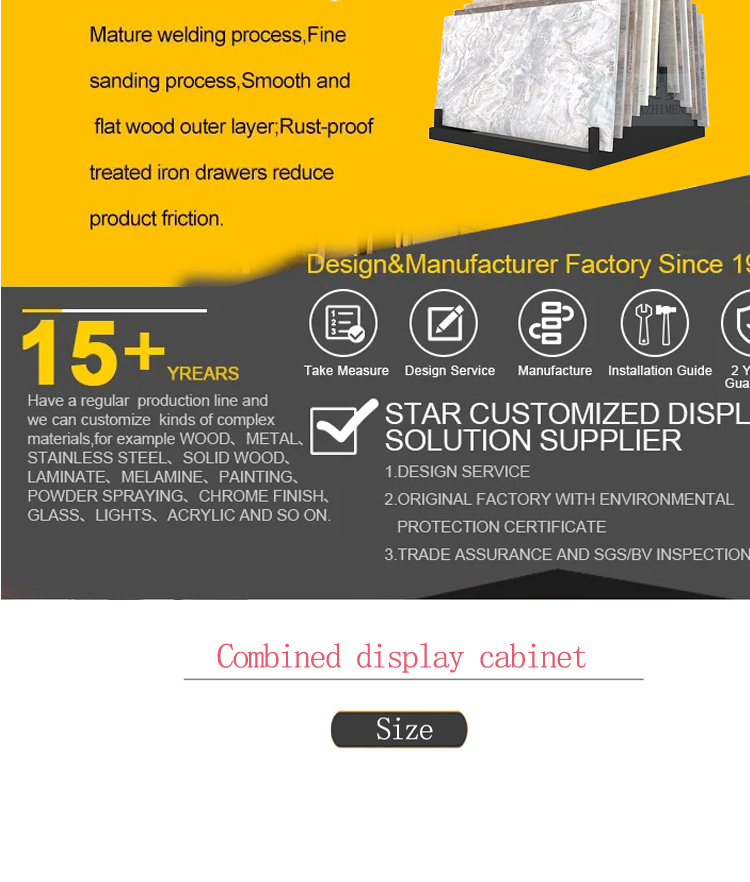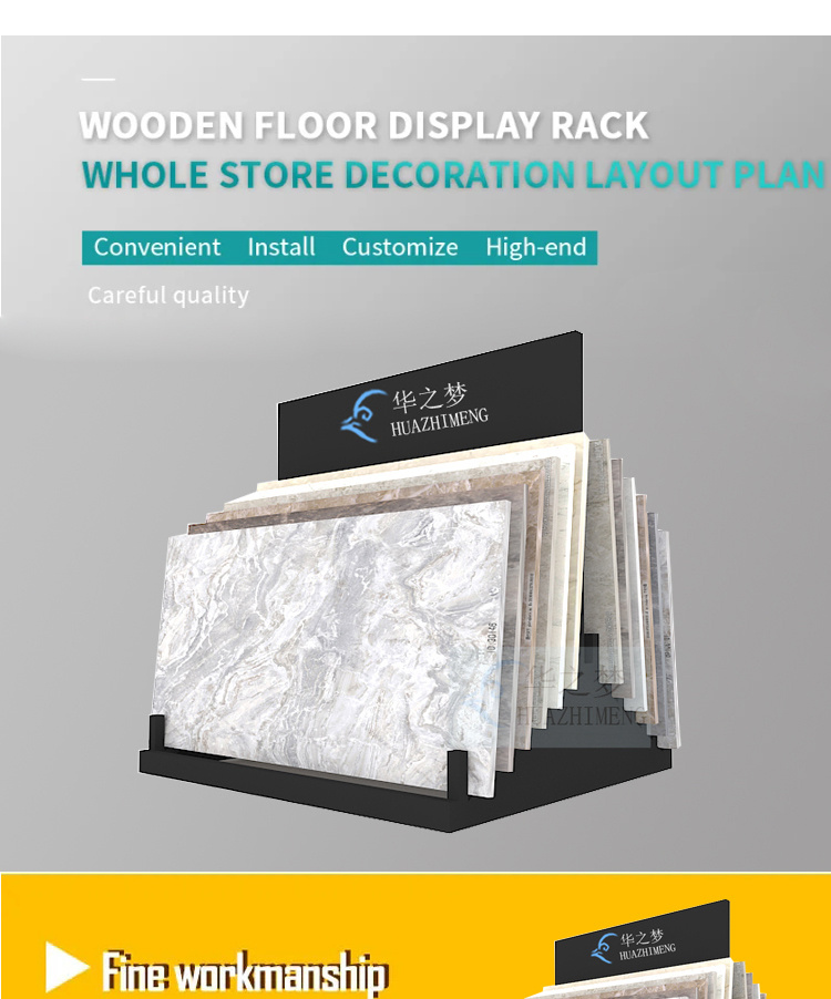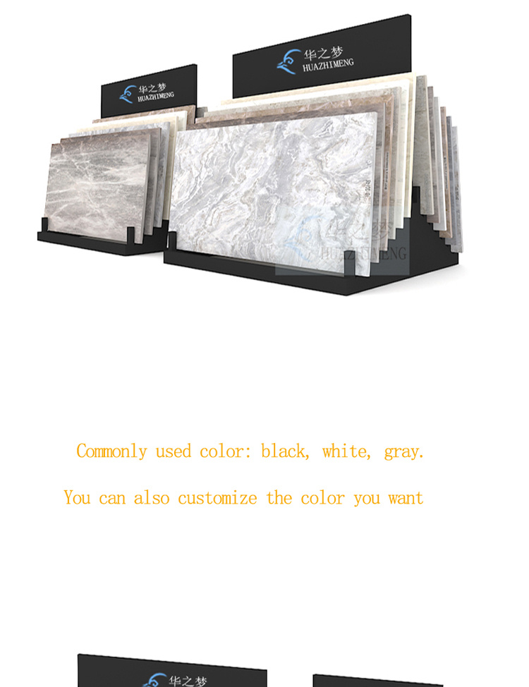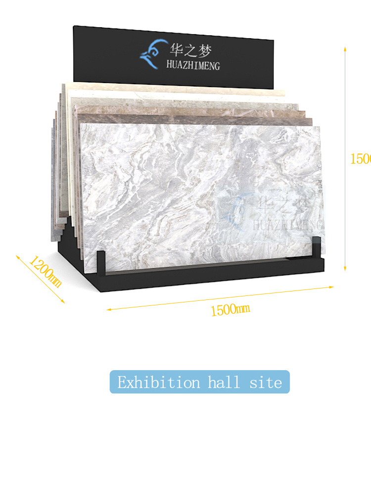 A modern customizable quartz granite marble tile display stand made of durable metal, suitable for indoor and outdoor use, supporting size customization, ODM, and OEM services, making it an ideal choice for supermarkets, trade shows, and exhibitions.