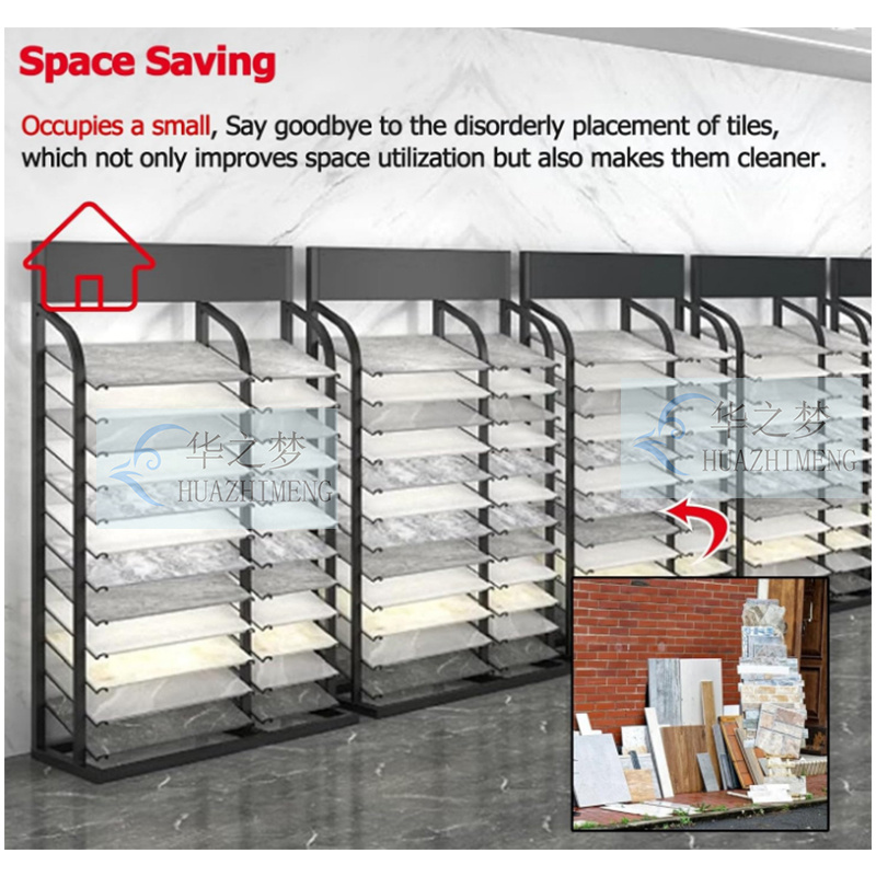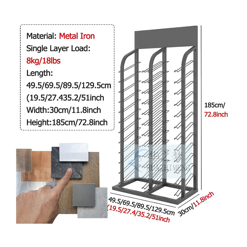 Each sample is neatly arranged in a separate support position, allowing customers to clearly see the texture and color. Improved browsing efficiency and enhanced product comparison. The upright structure creates a clean and professional display suitable for retail and exhibition environments.